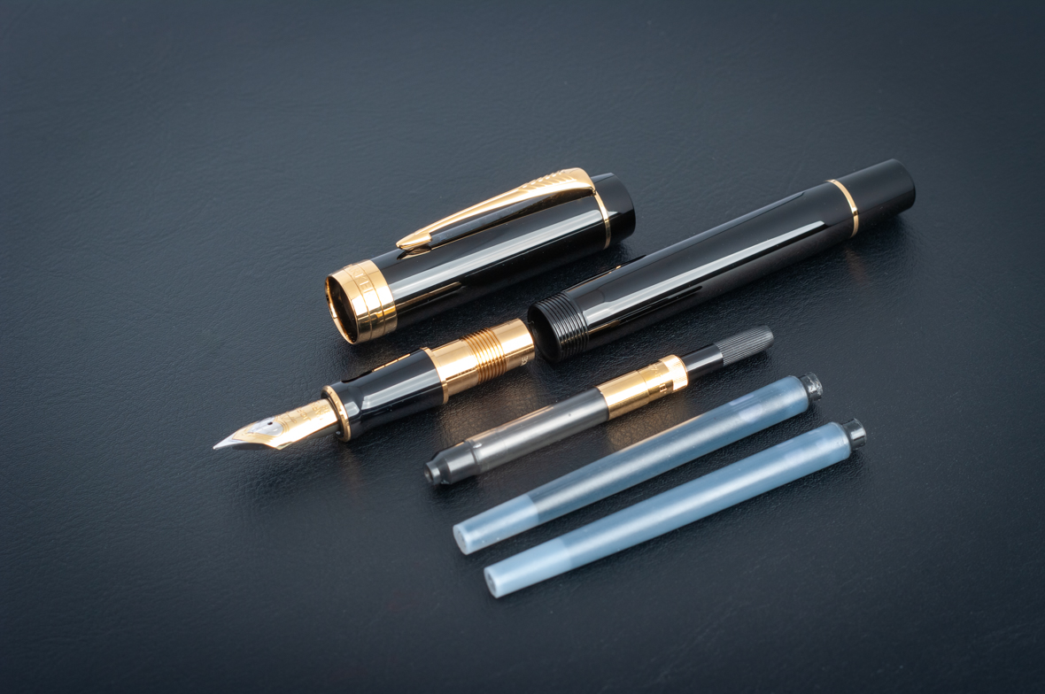 Перьевая ручка Parker Duofold Classic Centennial Black GT (F) от официального дилера Parker в Пушкино. Вы можете дополнительно заказать гравировку, которая подчеркнет Вашу оригинальность и придаст памятность статусному подарку. Все ручки Паркер поставляются в фирменном футляре.